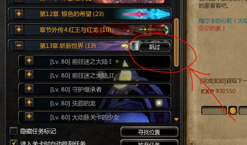 这个功能并非随意可用,它有一定的等级限制。当玩家的角色达到24级时,你就可以选择跳过24级及以下的所有任务,但无法跳过24至32级之间的任务。这样的设计旨在确保玩家在跳过任务时,已经具备了足够的实力和技能,能够顺利应对后续的挑战。