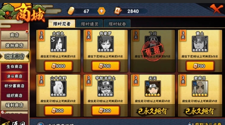 4、在一周的签到、段位赛升级、决斗场商店中获得忍者体验卡,可以用来直接兑换A级忍者;