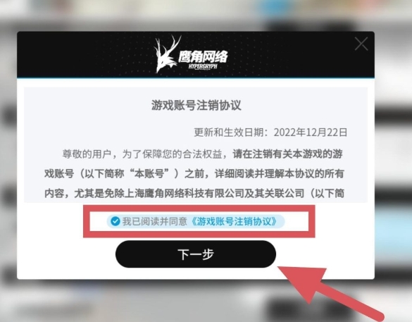 页面中将会弹出“注销游戏账号流程”提示,认真阅读