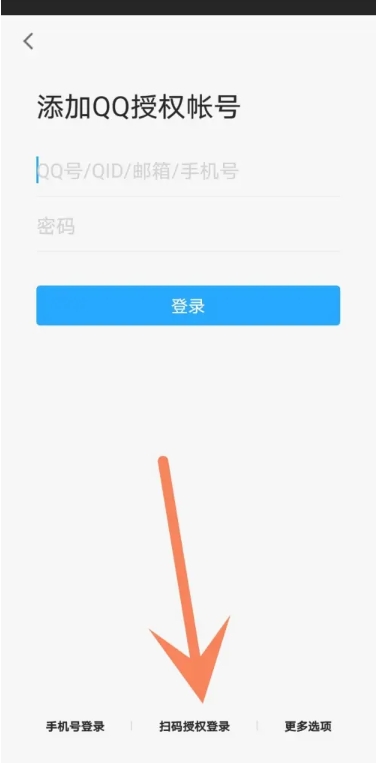 2、然后选择QQ登录,就可以跳转到QQ登录界面,选择“其他账号登录”,点击“扫码授权登录”,就会弹出二维码,扫码登录即可。