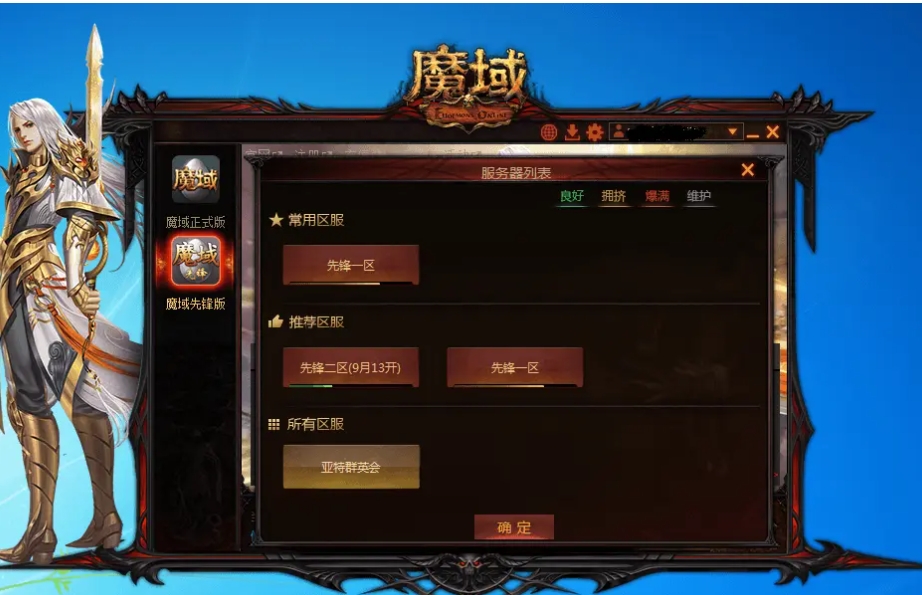 登录魔域游戏后,进入游戏主页