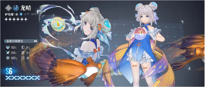 9、龙晴:水属性护佑者,被动有持续治疗,技能是屏障+伤害,作为生存位可以回血免伤。