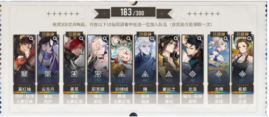 1、6星自选角色获取方式:完成300次共鸣后可以在10个6星角色中自选一个获取。