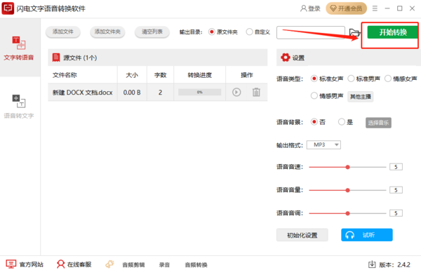 今天想给大家介绍的,就是这款闪电文字语音转换软件,这款软件可以语音和文字相互转换,并且支持的格式很多,可以操作的部分也很丰富,例如我们可以设置语音的类型、背景、输出的格式、速度等,将文件添加到软件中之后,轻松就可以转换。