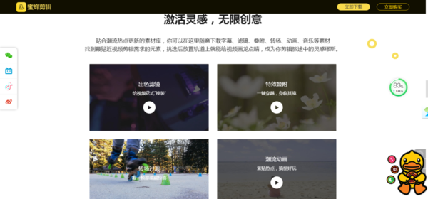 同时,蜜蜂剪辑软件不仅拥有常用的基础的视频编辑功能,同时它还具备添加滤镜、转场特效、马赛克、多轨道同时编辑等功能,而且还提供了多样的、丰富的设计样式以及模板,让我们使用这款视频剪辑软件可以轻松的制作出高大上的视频。