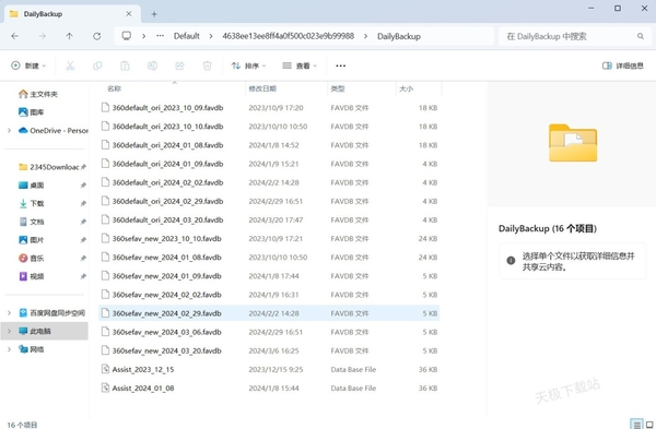360浏览器收藏夹通常保存在以下位置:D:\360se6\User Data\Default\4638ee13ee8ff4a0f500c023e9b99988\DailyBackup,找到上述路径下的收藏夹文件,将其复制备份,并尝试覆盖当前用户的同名文件,有可能恢复收藏夹内容。