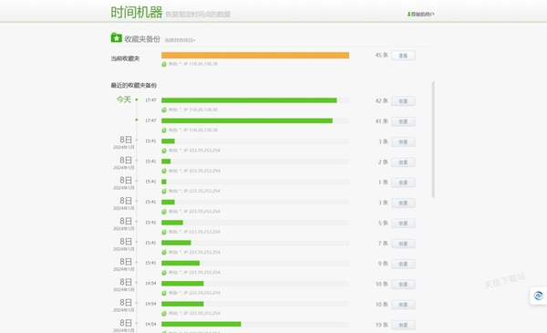 ②在“备份与还原”子菜单中,您会看到“从历史版本中恢复”的功能,可以选择从近期备份中恢复收藏夹。