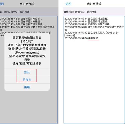 在手机端(或好友的奥维),弹出提示“是否接受地图文件”,选择【默认】,等待窗口提示“接收完成”。
