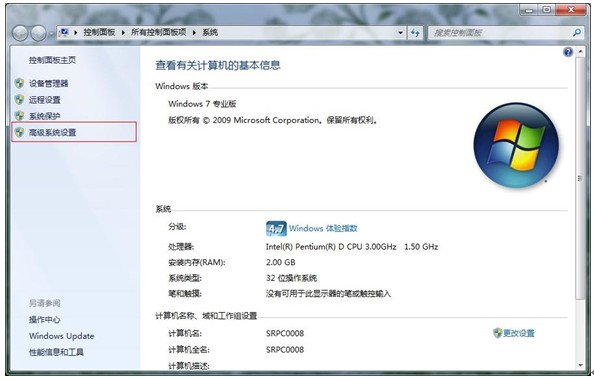 1,如果你是Windows 7系统,就参考下图的界面,在页面中点击“高级系统设置”选项。