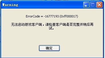 三,出现Error code=-16777192(0xFFFF000018),就要检查游戏客户端是否完整,客户端是否具有UserVersion.dat文件。