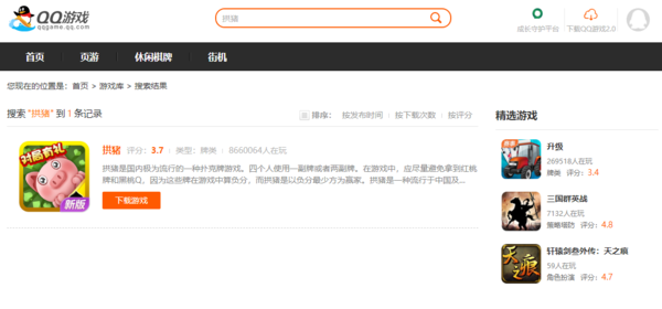 1、QQ游戏大厅。作为一款颇具经典且不断更新迭代的游戏库,QQ游戏大厅从最早仅有几款棋牌游戏,到现在各类游戏应有尽有,我们可以在此轻松游玩拱猪。