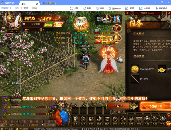 2,如今手机游戏盛行,但是传奇世界随着任务系统的不断优化,成为了页游的一大亮点,奖励更加重磅,珍品更加绝世,虽然玩家没有当年多,但是仍然有比较稳定的用户群体。