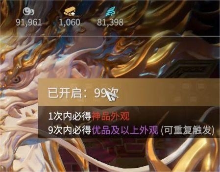 循环保底就是在基础中奖概率的基础上,玩家最多开启十次就可以获得一件紫色及以上的奖励,而且这个概率可以不限触发次数,运气好的玩家不需要开到第十次就可以中奖哦。