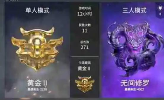 2,有41%的玩家是在黄金及以下的,达到铂金段位的只有33%,陨星、蚀月、坠日玩家占比分别是15.23%、6.57%、2.32%,而无间修罗段位占比只为0.88%。