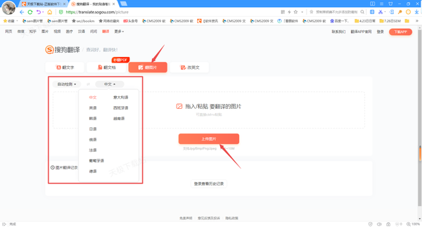 2、接着,点击页面上方的【翻图片】选项,然后设置好相关的翻译参数,接着将需要翻译的图片或截图添加进来。