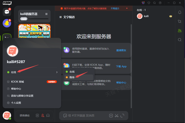 以上,就是小编为大家整理的关于KOOK游戏语音开黑时开启隐身在线模式的全部内容了。