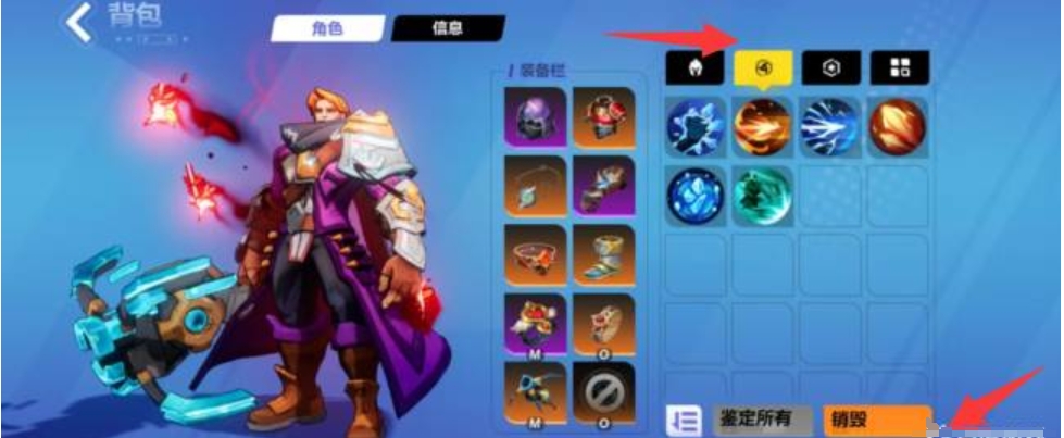 2、然后点击背包中的第二个图标,选择想要销毁的技能,点击销毁。
