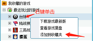 当我们在边锋游戏大厅中浏览游戏时,看到自己青睐的游戏,可以右键点击游戏,此时会显示扩展菜单,我们接着点击【添加到收藏夹】,就可轻松将游戏添加到收藏,这样以后再玩就不用从菜单里逐个寻找。