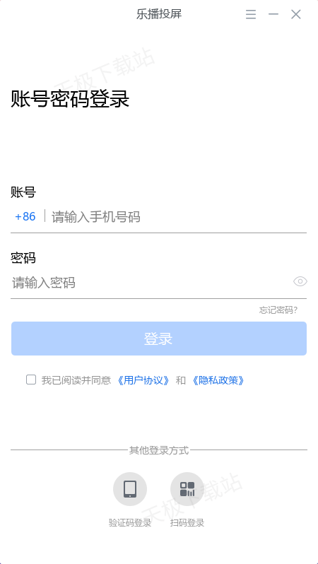 根据小编的亲自使用经验来看,PC端乐播投屏不绑定手机号是不能够直接使用的,因为目前最新版本的软件在启动后,就需要输入自己的账号密码或验证码来进行登录,并且这个账号直接就是大家的手机号。如果不注册或登录账号的话,是无法使用软件的,无法绕过登录这一步骤。