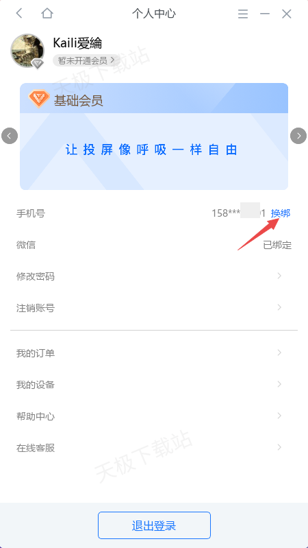 PC端乐播投屏助手更换绑定手机号怎么弄