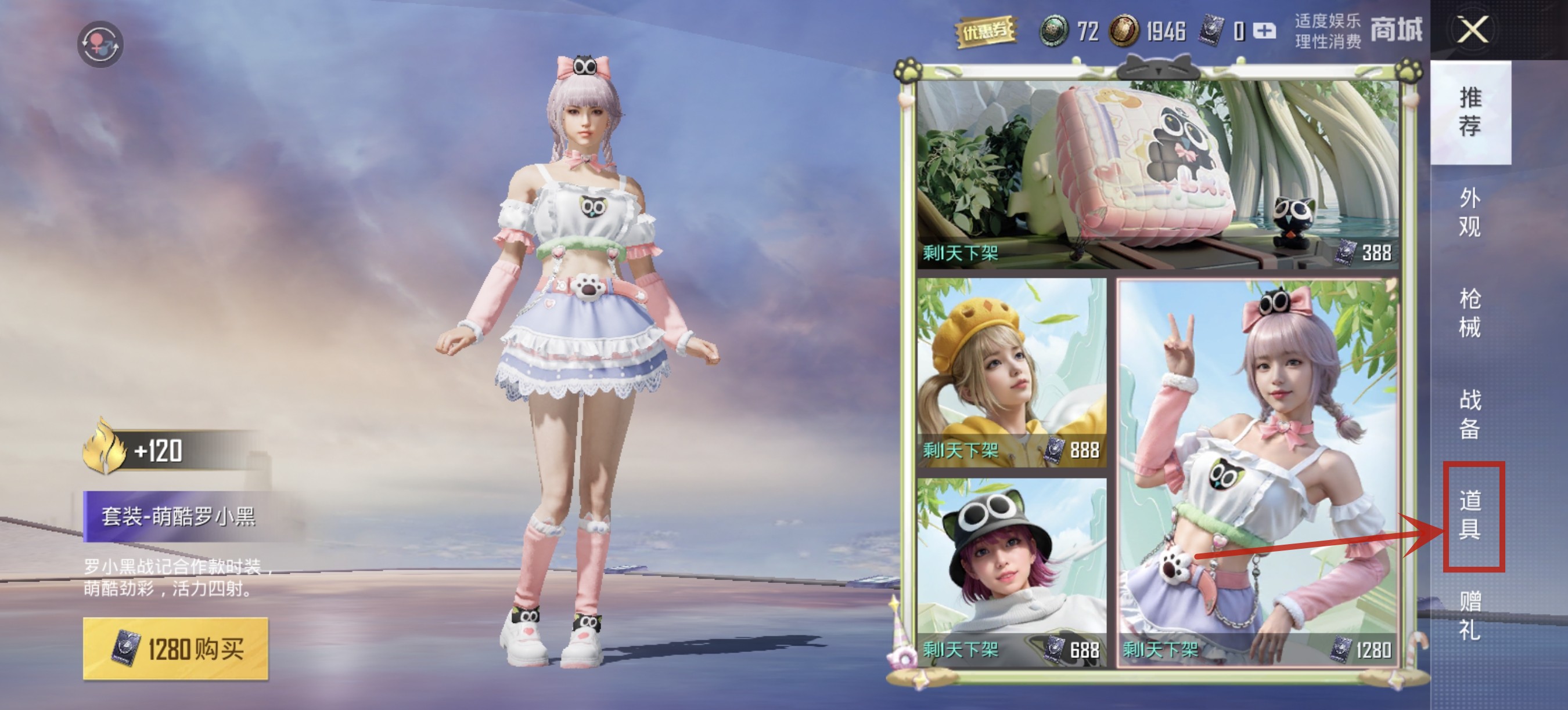 2.进入商城后,我们看向右边,找到“道具”的功能,点击进去。