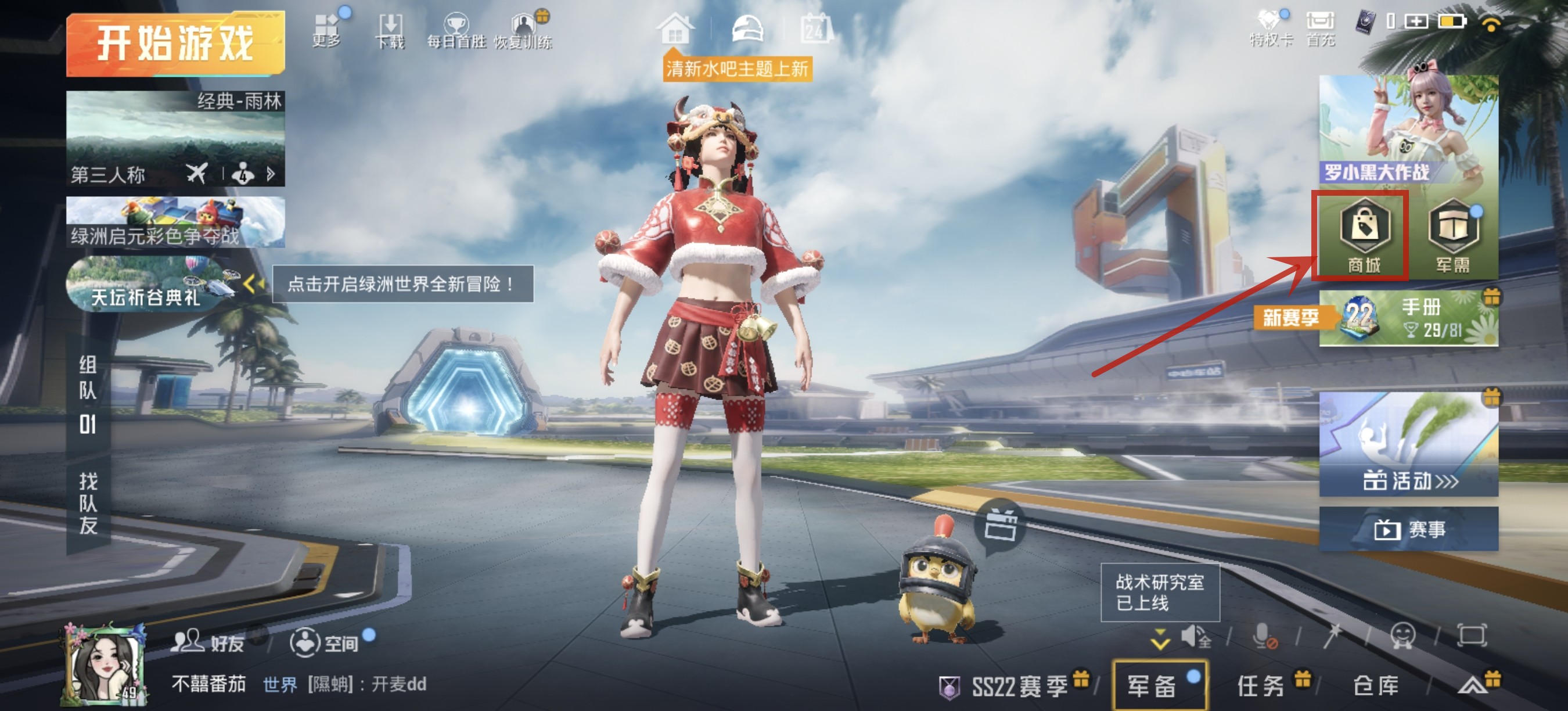 1.首先。我们要登陆游戏,在主页中找到右手边的“商城”,点击进去。