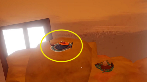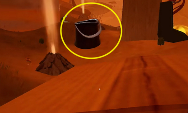 第三个玩偶在如图的桶里。利用旁边类似火山的喷气孔飞起来进去。出来需要点击右上角的暂停 - -> 我被卡住了 --> 然后选择飞回起点位置。