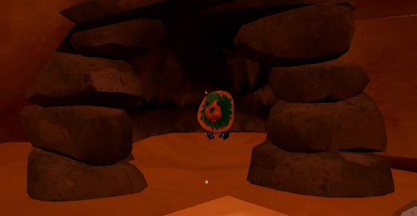 第二个玩偶在如下图的洞里。需要去湖底拿一个类似肉一样的东西,将其往洞里面扔,然后玩偶就出来了。
