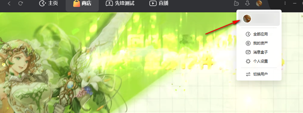 1、进入电脑上的WeGame平台软件,然后在首页点击上方黑色边框中的自己头像。