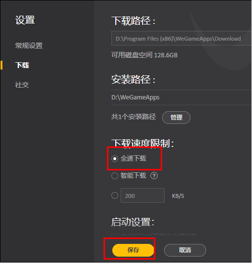 四,除此之外,还可以在这个页面中对下载速度进行调整,比如说全速下载或者智能下载等等,这个要根据自己的电脑运行情况和网速来进行相应的调整。