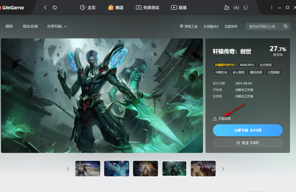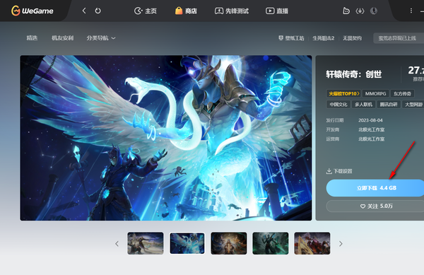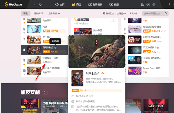 一,在电脑上进入到wegame的软件主界面以后,在首页就可以看到有非常多免费下载的游戏供大家体验,选择好一个之后,点击进入到这个游戏的下载页面。