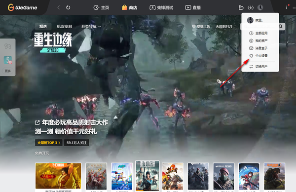一,在电脑桌面上双击启动we game这款软件,在主页点击一下自己账号的头像。