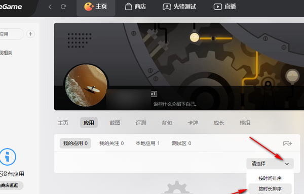 四,除了查看游戏的体验时长以外,在每一款游戏应用的右侧,还可以通过点击“请选择”这个选项在下拉栏中进行应用的排序,可以根据游戏的时长对应用进行排序,方便把经常登录的游戏放在靠前的位置,方便我们快速进入。