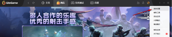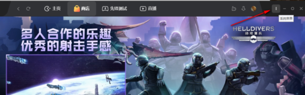 1、大家可以先在财神爷站网下载WeGame平台,然后在电脑上登陆,在主界面的右上方点击三个白色圆点,也就是系统菜单这个功能。