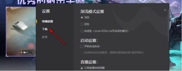 3、在系统设置这个窗口里左侧会有“下载”这个功能,点击以后,在右侧就会对应的出现跟下载有关的设置参数。