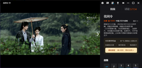 鞠婧祎新剧花间令在优酷上支持不付钱免费下载么