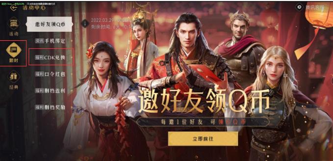 2.在打开的活动列表中选择【限时】-【CDK兑换】;