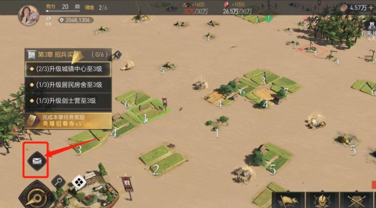 3.兑换后的游戏道具会进入邮箱中,此时返回到主界面,点击左下角的信封进入到邮箱