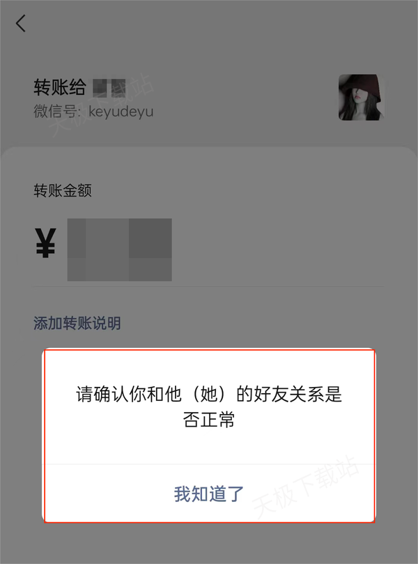 向需要验证的好友转账。如果此时提示【请确认你和他(她)的好友关系是否正常】,那么很有可能对方把你拉黑了。如果提示【你不是收款方好友,对方添加你为好友后才能发起转账】,那么此时很有可能对方把你删除了。