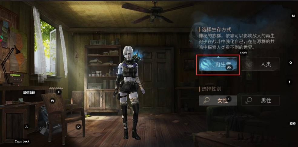 如下图可以看到新创建人物的时候会让选择是人类还是再生者。半感染者攻击目标时,会靠寄生莲寄生毒人获得不同功效的孢子,有高级的和普通的,拾取后获得恢复效果和各种技能。