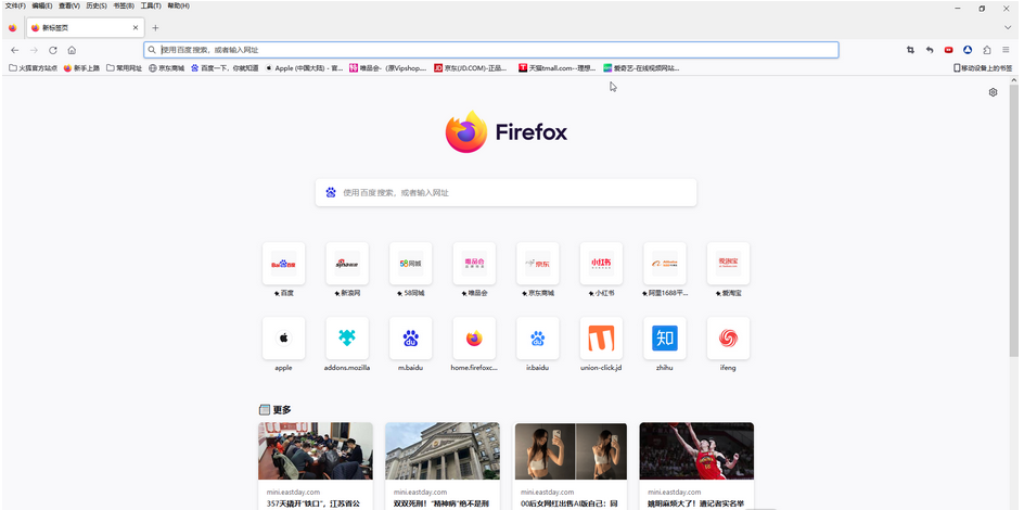 第一步:双击打开Firefox进入首页,可以在界面上方看到当前的书签;