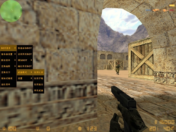 在游戏内,按下“H”键,然后依次点击“BOT菜单”→“武器设置”。在这里我们可以指定人机使用刀、手枪、狙击和所有武器,通过简单的操作就可以让人机按照我们的设定来使用特定类型的武器。