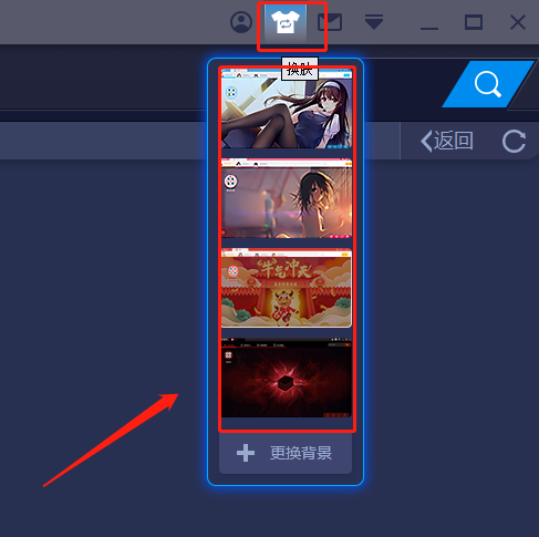 打开蓝叠模拟器之后我们可以在软件的右上角找到一个衣服样式的图标,这个就是蓝叠模拟器的皮肤选项,点击后下面会出现一些皮肤样式点击就可以更换了。
