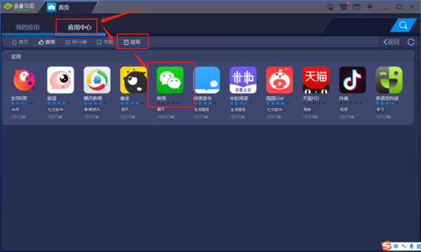 蓝叠模拟器中是可以使用微信的,我们下载安装就可以使用。首先我们打开蓝叠模拟器,之后在上方的两个选项中,点击“应用中心”,然后在下方的位置找到“应用”一项,这个时候会出现一排软件,在这里就可以找到微信了。