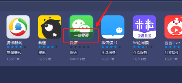 将鼠标移动到微信图标上之后会出现一个“一键安装”的选项,点击“一键安装”之后会自动跳转到蓝叠模拟器的主界面,然后这个时候微信就会开始安装了,安装完毕之后我们就可以双击进入开始使用了。