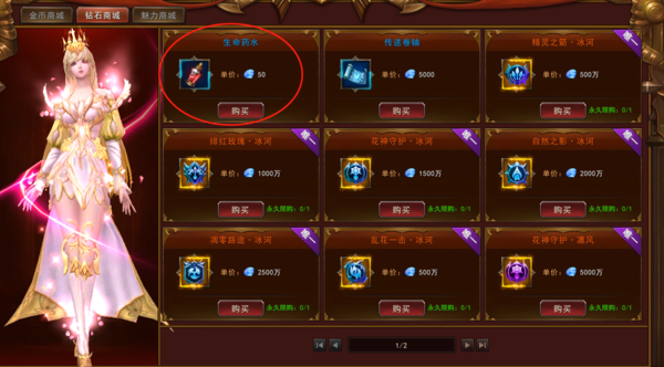 我在天空之剑中打开商店,接着找到【钻石商店】,我们即可看到生命药水,其售价为50钻石一瓶,且单次最多可以购买999瓶,一瓶可以给我们提供1000万的自动回血,即使是999瓶,就够我们使用很久。