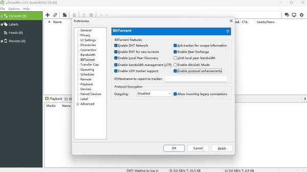 3、接着,点击【bitorrent】(任务),勾选的选项如图;