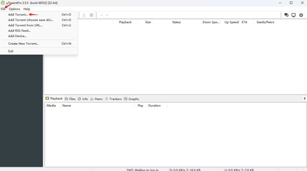 1、依次点击左上角【file】→【Add torrent】,进入添加任务的界面;