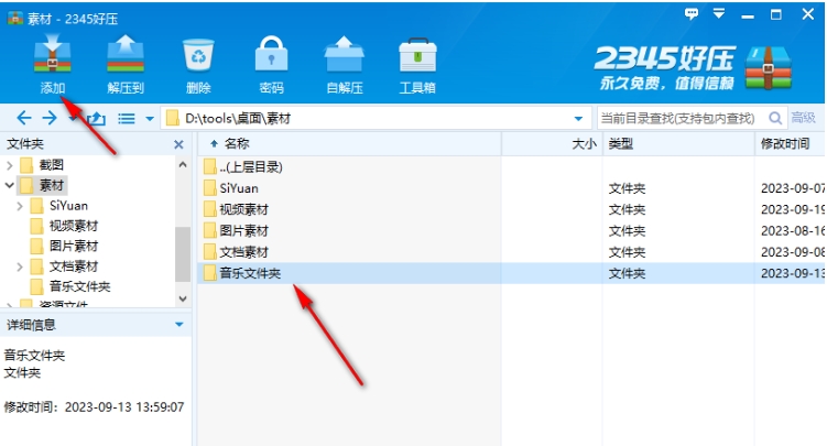 1、打开好压软件,选择需要进行压缩的文件,然后点击软件主界面左上角的“添加”图标。