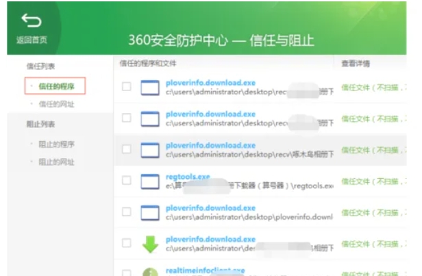 点击“信任区”功能,会打开一个新的界面或窗口,显示已经被信任的文件或软件列表。